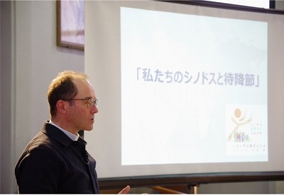 今回はカトリック玉造教会主任司祭のヌノ・リマ神父にミサ司式から始めていただき、講話「私たちのシノドスと待降節」について1時間ほど話していただきました。