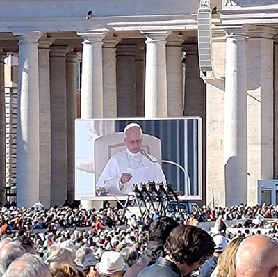 ヴァチカンの聖ペテロ大聖堂広場でレオ14世教皇様の定例謁見に参加しました。