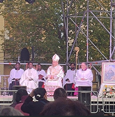 前田万葉枢機卿様が団長で、全国の教会から34人が巡礼しました。
